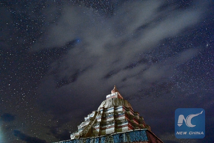 Photo taken on Sept. 11, 2018 shows the starry sky in Ngari, southwest China's Tibet Autonomous Region. The Ngari area has an average altitude of over 4,000 meters above sea level. (Xinhua/Purbu Zhaxi)