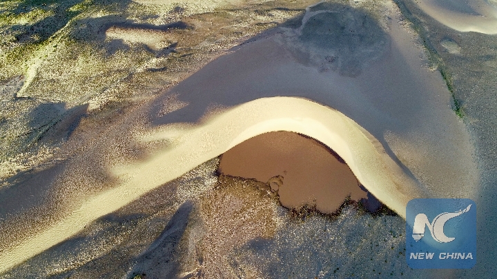 Photo taken on Sept. 8, 2018 shows sand dunes near the source of the Yarlung Zangbo River in Zhongba County of Xigaze, southwest China's Tibet Autonomous Region. (Xinhua/Purbu Zhaxi)