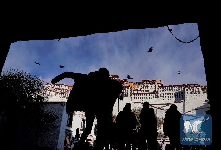Tourists walk into the Potala Palace in Lhasa, southwest China's Tibet Autonomous Region, Nov. 15, 2018. (Xinhua/Purbu Zhaxi)
