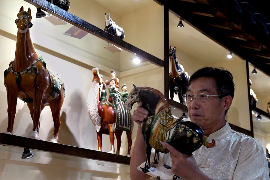 Gao Shuiwang, a 61-year-old master craftsman, has been devoting himself over the past four decades to studying and making fine Tang Sancai. As one of the few who has mastered the essence of making the pottery, Gao earned the title of an inheritor of making Tang Sancai. Some of his creations have not only won awards, but also been collected by about 50 museums at home and abroad.