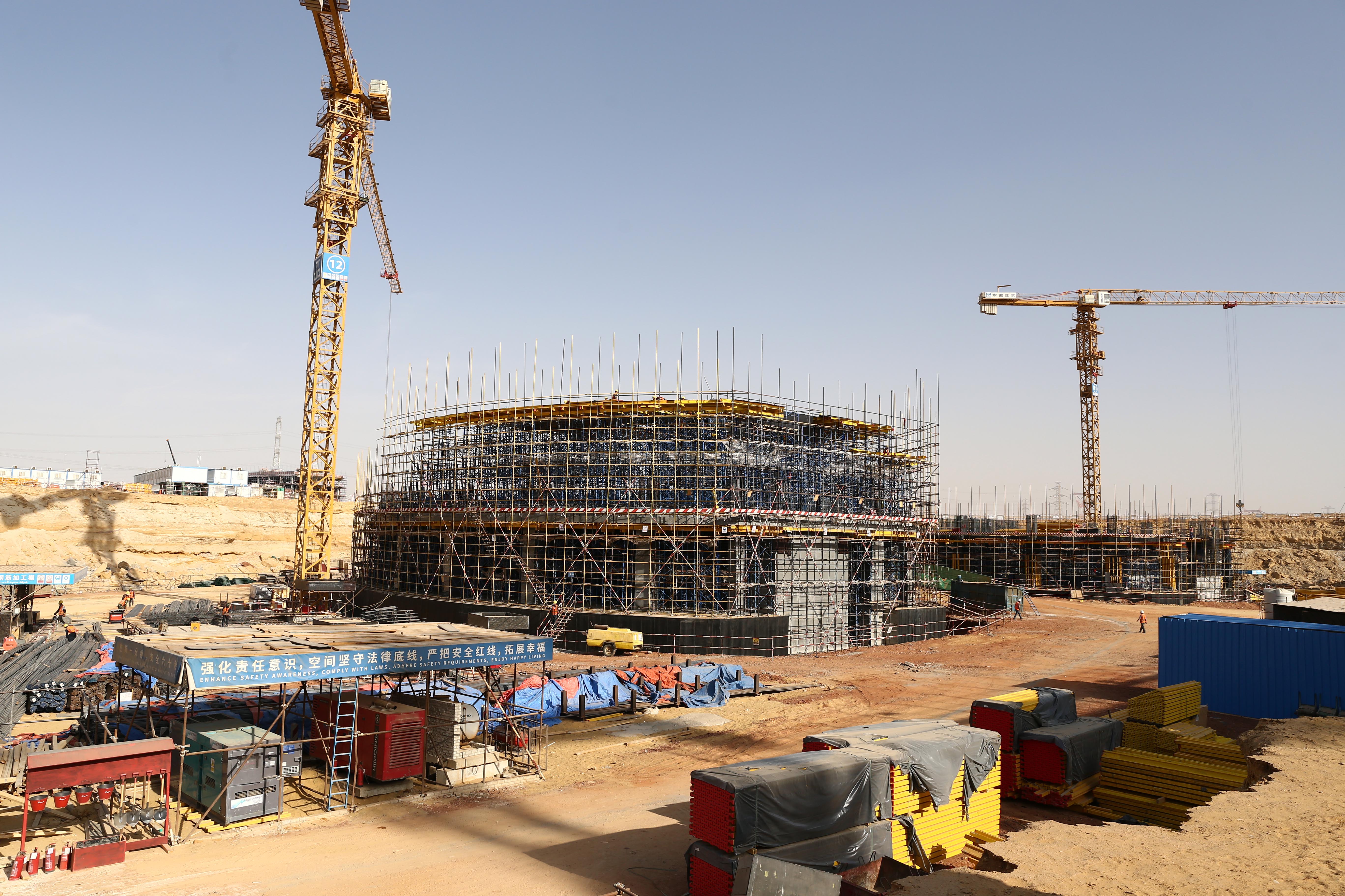 Photo taken on June 1, 2019 shows the construction site of China State Construction Engineering Corporation (CSCEC)'s Central Business District (CBD) project in Egypt's New Administrative Capital, about 50 kilometers east of Cairo. (Xinhua/Ahmed Gomaa)