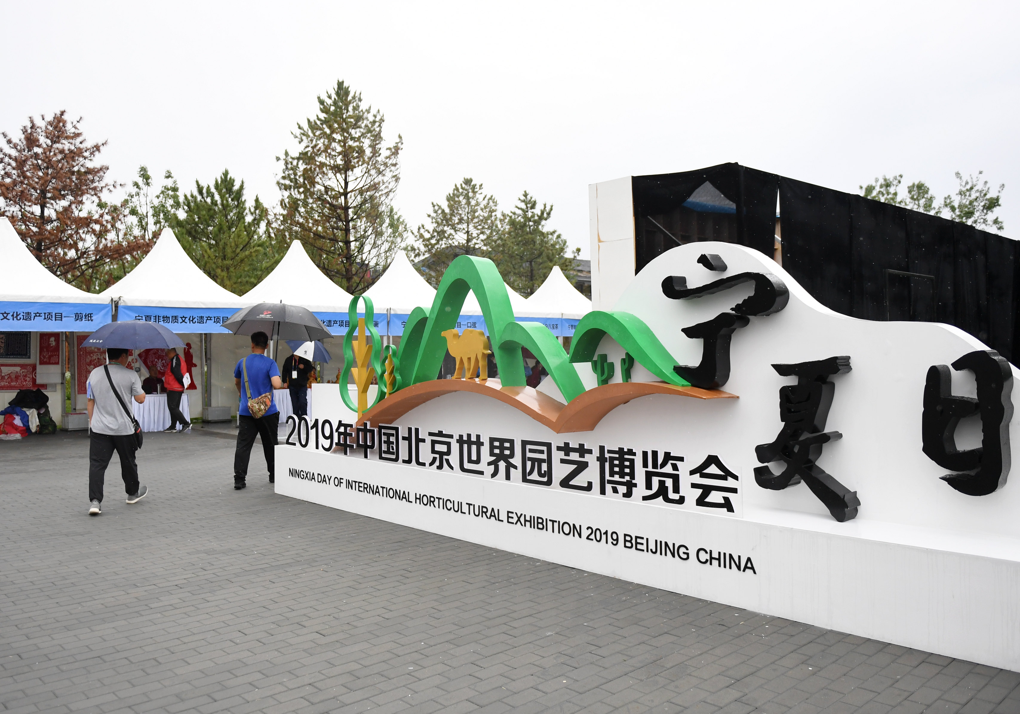Tourists visit the Ningxia Garden at the Beijing International Horticultural Exhibition in Beijing. (Xinhua/Zhang Chenlin)