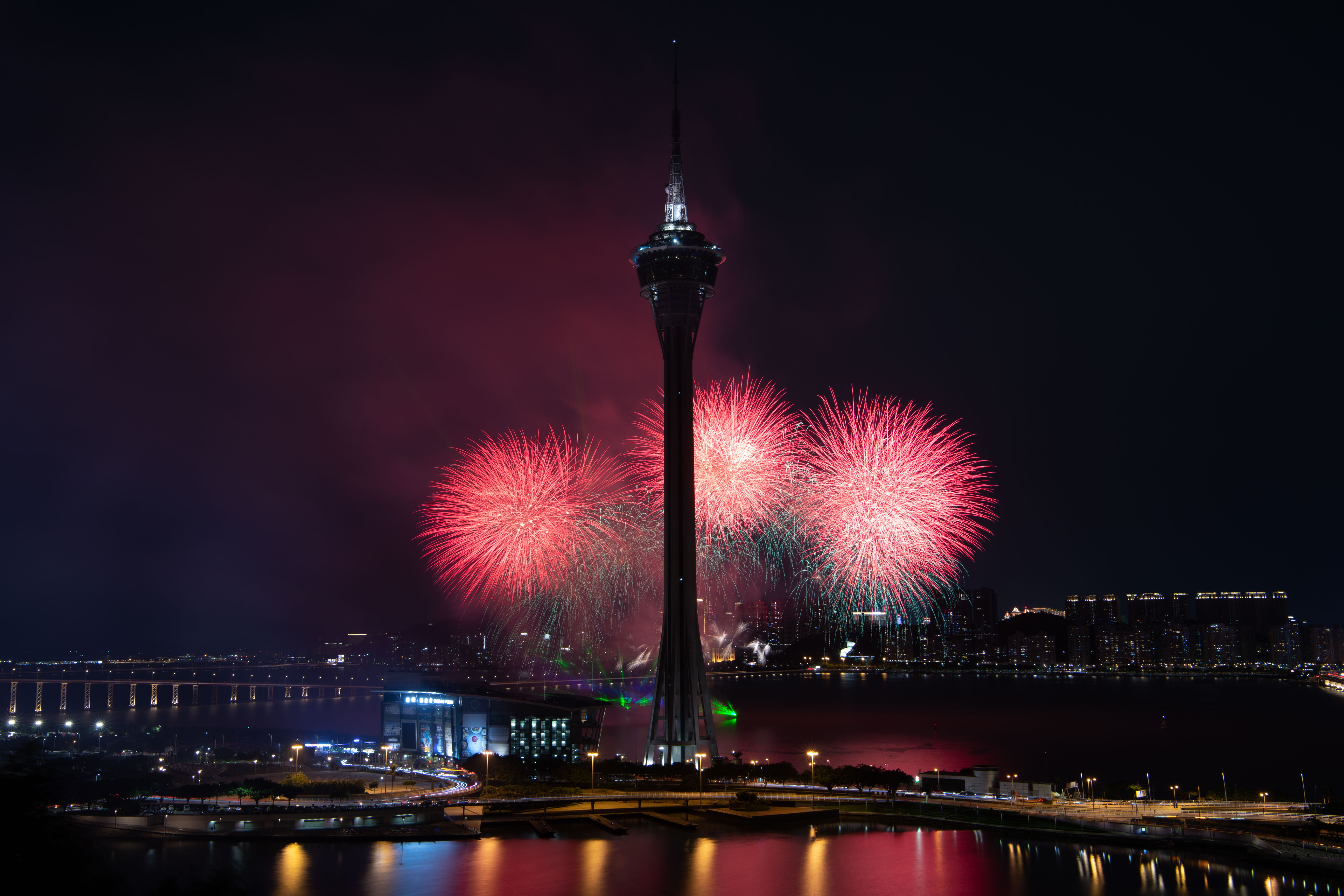 Fireworks celebrating the Mid-Autumn Festival lights up the sky in Macao, south China on Sept. 13, 2019. (Xinhua/Cheong Kam Ka)