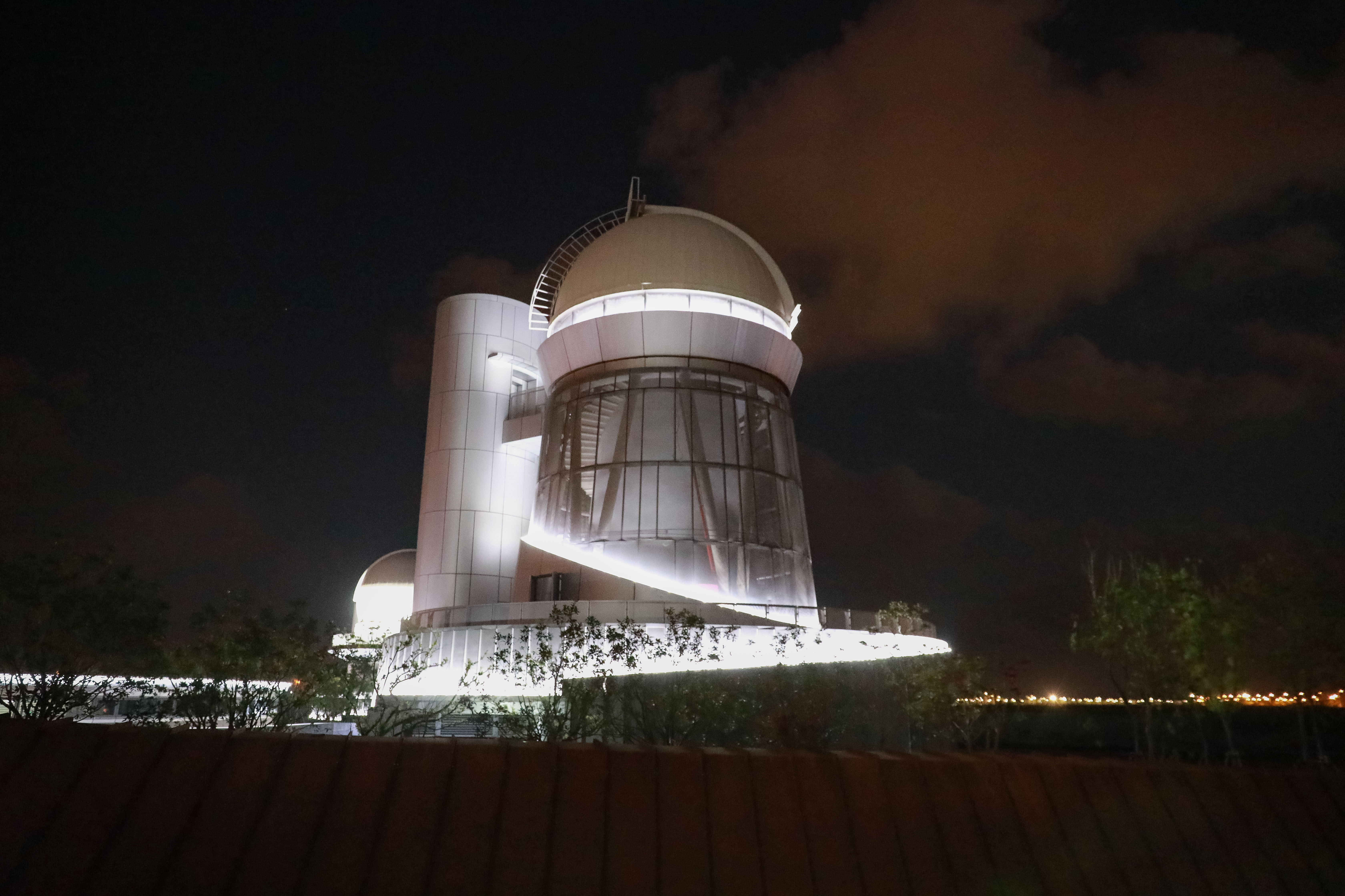 Photo taken on Sept. 12, 2019 shows the solar tower of Shanghai Planetarium in Shanghai, east China. Shanghai Planetarium, which is expected to open in 2021, was illuminated for the first time to celebrate the Mid-Autumn Festival. (Photo by Sun Leqi/Xinhua)