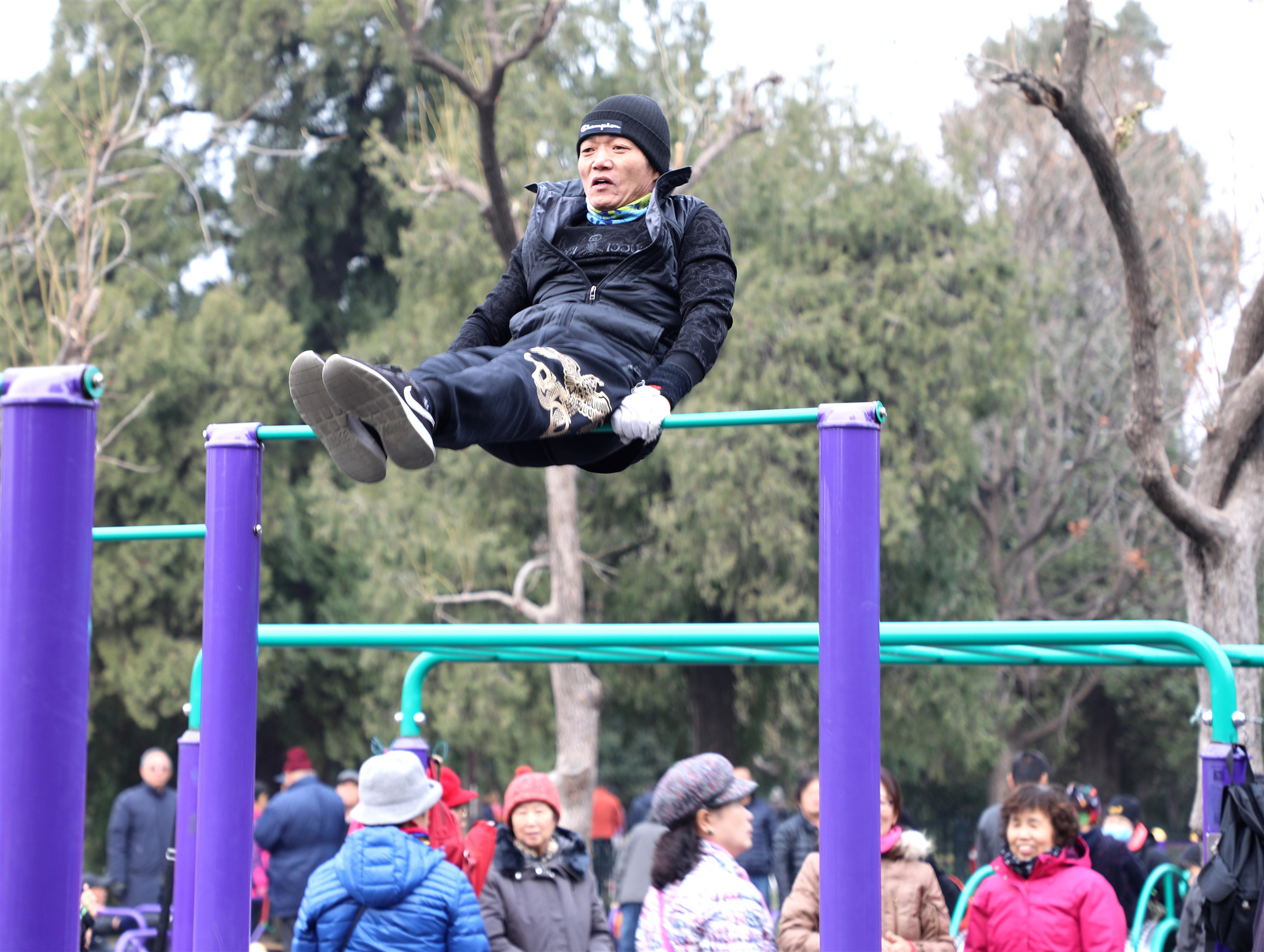Fawang on the high bar at the Temple of Heaven, Nov. 21, 2019