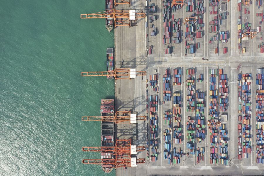 Aerial photo taken on Nov. 23, 2019 shows a container terminal at Qinzhou Port in south China's Guangxi Zhuang Autonomous Region.(Xinhua/Cao Yiming)