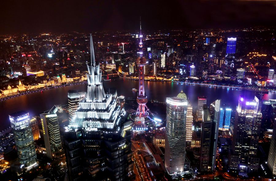 Photo taken on Oct. 25, 2018 shows a night view of the Lujiazui area in Shanghai, east China. (Xinhua/Liu Ying)