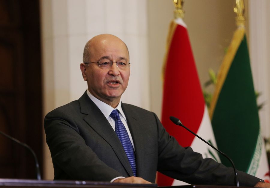 In this file photo taken on March 11, 2019, Iraqi President Barham Salih speaks at a joint news conference with visiting Iranian President Hassan Rouhani in Baghdad, Iraq. (Xinhua/Khalil Dawood)