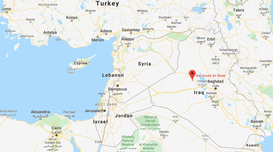 Screenshot of Ayn al-Asad airbase in Iraq on the map.
