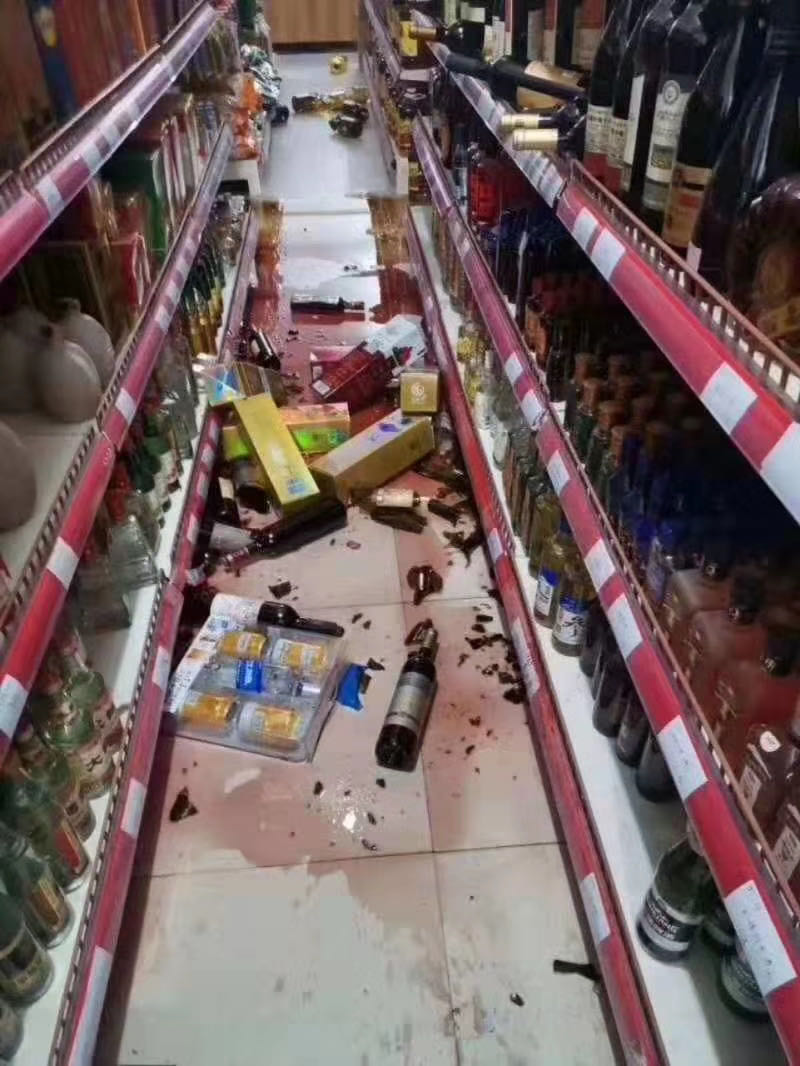 Mobile phone photo taken on Jan. 19, 2020 shows the indoor scene of a supermarket in Bachu County after an earthquake hit Jiashi County in Kashgar Prefecture in northwest China's Xinjiang Uygur Autonomous Region. A 6.4-magnitude earthquake hit Jiashi County in Kashgar Prefecture in Xinjiang at 9:27 p.m. Sunday Beijing Time, according to the China Earthquake Networks Center (CENC). (Xinhua)