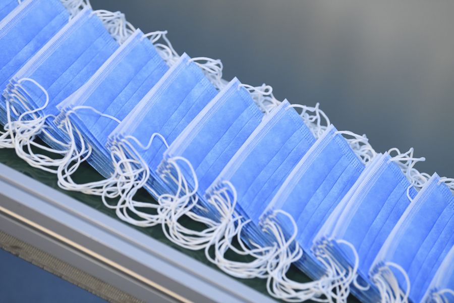 Photo taken on Feb. 11, 2020 shows masks made at a medical supply company in Nan'an District, southwest China's Chongqing. (Xinhua/Wang Quanchao)