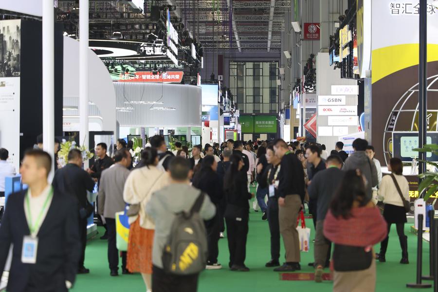 SHANGHAI, Nov. 9 (Xinhua) -- The Trade in Services Exhibition area at the eighth China International Import Expo (CIIE) focuses on resource integration, attracting leading global service providers and industry clusters while enhancing the coordinated and open development of the service and manufacturing sectors. This creates more specialized enabling services to offer enterprises new opportunities for shared growth.