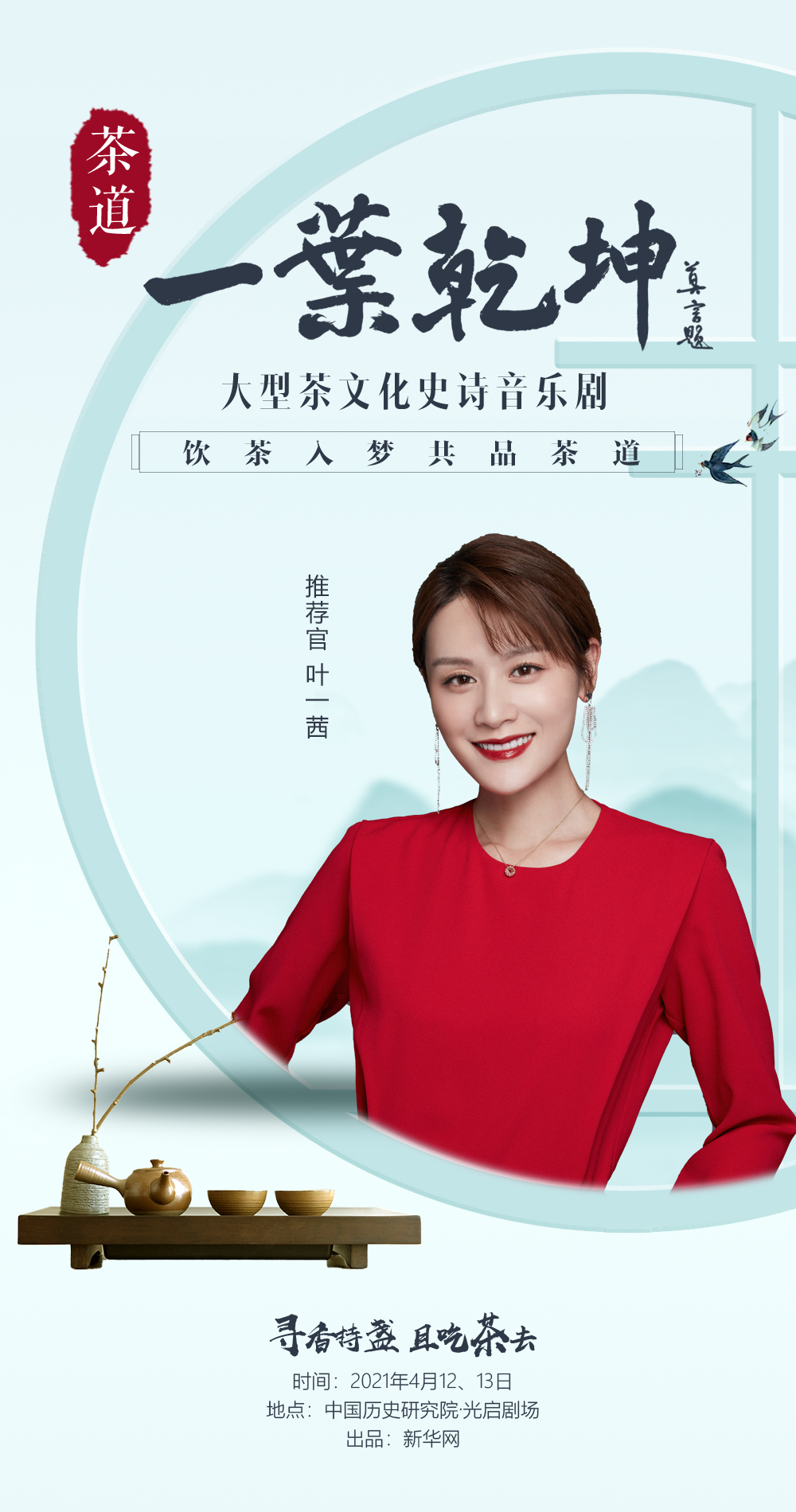 一茶一世界,一葉一乾坤。由新華網獨家出品的大型茶文化史詩音樂劇《茶道:一葉乾坤》將于2021年4月12日-13日在中國歷史研究院光啟劇場隆重上演?!恫璧溃阂蝗~乾坤》推薦官葉一茜向您發出邀請,邀您共賞葉中乾坤,以茶會友,共品茶道。