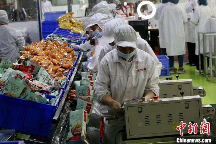 图为广西柳州市一螺蛳粉企业外包车间。 林馨 摄