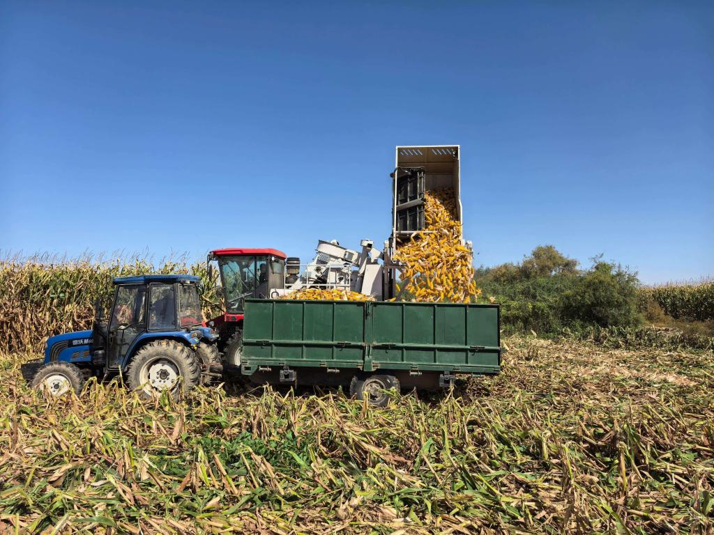 在地处内蒙古西部地区的巴彦淖尔市磴口县源盛合农业专业合作社玉米种植基地,大型收割机开足马力作业,金灿灿的玉米从卸粮口装入车厢。该专业合作社负责人贾海说:“今年,我们一共种了2000多亩玉米,平均亩产2200斤以上,亩均收益预计可达2000多元。跟过去相比,每亩地可多收玉米150斤左右。”