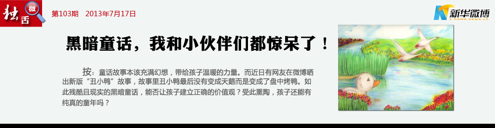 【黑暗童話也有正能量】 兒童閱讀黑暗童話——丑小鴨變烤鴨并不可怕,這是一種挫折教育。孩子的成長需要適度的挫折教育。一直活在象牙塔里的孩子,在走入社會之后很難適應現實的生活,他們常常因為學業或工作中的一點挫折而走向極端。因此,在其進入社會之前進行適度的挫折教育必不可少。