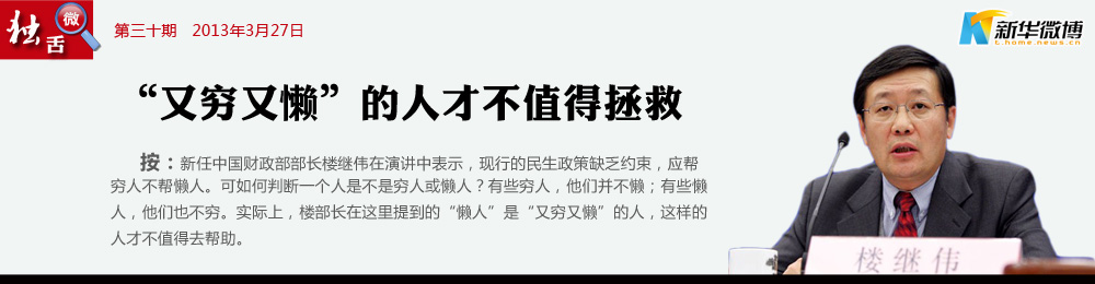 區別對待窮人懶人 我們可以幫助那些靠個人努力不斷進取但因求學、就業、成長、疾病等遇到臨時經濟困難或思想困惑的人,而不應該幫助那些個人不努力實現自我增值卻只抱著“等靠要”或只索取不會給予的人。
