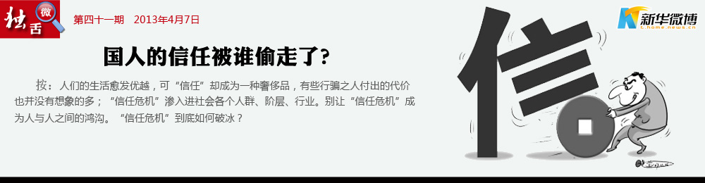 “信任危機”非一日之寒 水能載舟,也能覆舟。信任的跌落不是一天的事,同樣信任的構建也不是一天的事。現在主要的事是讓更多人體會到信任跌落這事的嚴重性,最好與他們的利益掛上鉤,這事也就逐漸不是事了。