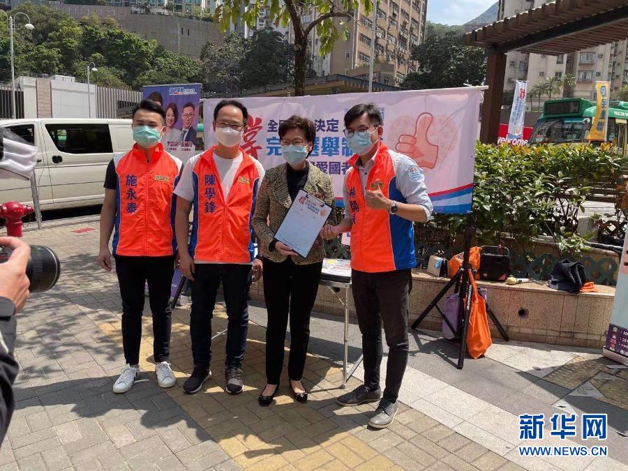 新華社香港3月15日電(記者劉明洋)連日來(lái),“香港各界撐全國(guó)人大決定完善選舉制度連線(xiàn)”在全港各區(qū)擺設(shè)街站,收集市民支持全國(guó)人大決定的簽名。香港特區(qū)行政長(zhǎng)官林鄭月娥15日前往位于港鐵堅(jiān)尼地城站的街站簽名,支持落實(shí)“愛(ài)國(guó)者治港”原則,并為街站工作人員打氣加油。
