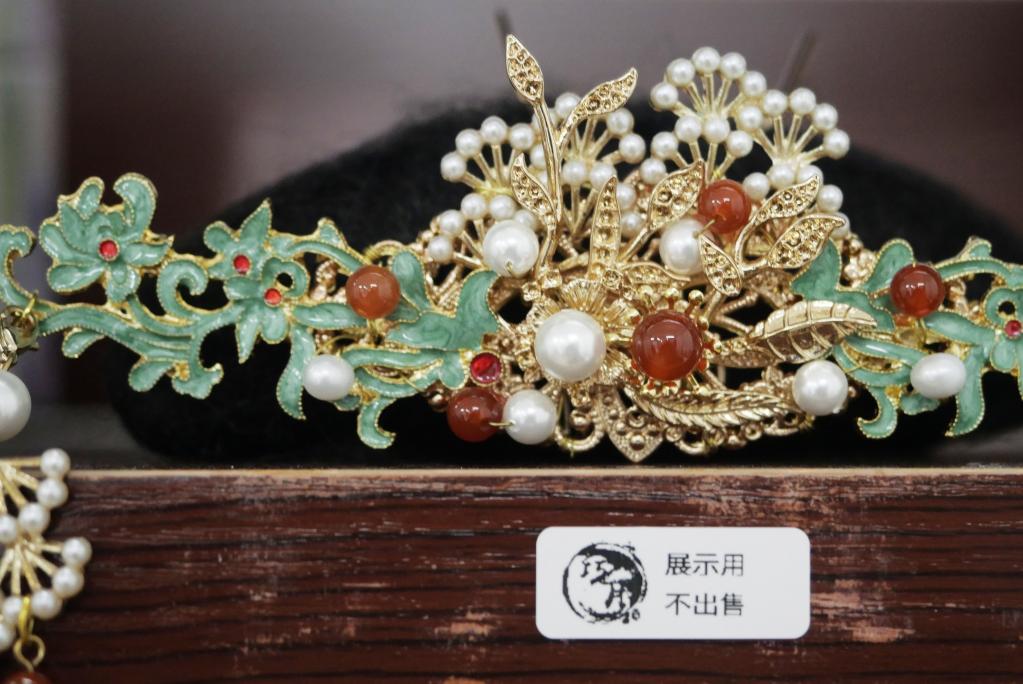 在香港葵涌一座工業大廈內,漢文化工作室中擺放的頭飾(7月10日攝)。新華社記者 王申 攝