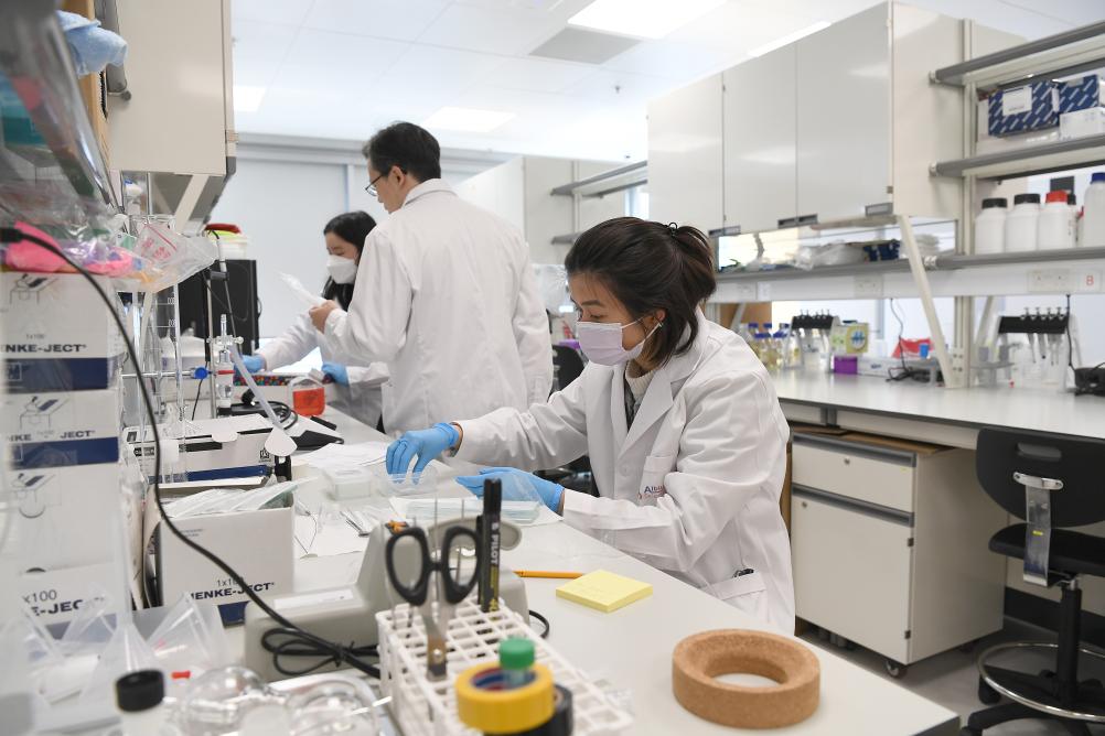 2023年3月3日,工作人员在香港科学园生物医药科技培育计划 (Incu-Bio) 共享实验室工作。新华社记者 陈铎 摄