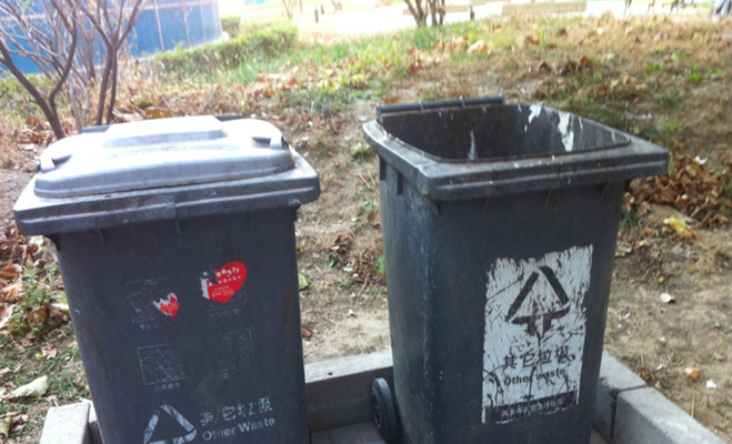 除了幾棵大樹之外,小區(qū)基本上沒有綠化,以前貌似種過綠草的地方,如今枯黃一片。垃圾桶早就已經(jīng)破舊不堪,在殘留的文字上,依稀可見當時也曾嘗試過的垃圾分類。小區(qū)內(nèi)沒有兒童休息場所、也沒有健身器材,只是設(shè)有幾個孤零零的座椅。