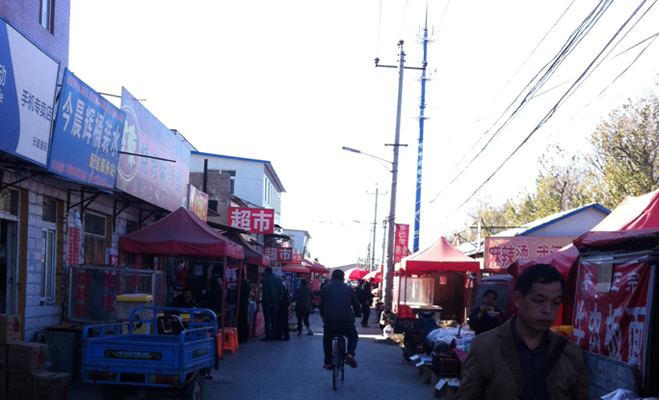 記者發現,小區內基本沒有任何配套,沿街道路十分冷清,而周邊也多是施工場地缺乏基本的生活設施。步行幾百米有一處自發形成的小型商品集散地,內有小型超市、小吃等,主要面向附近的工友。