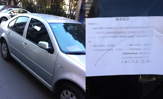 進(jìn)入小區(qū)后記者在門口左側(cè)等位置發(fā)現(xiàn)了多輛亂停車輛,上面被貼上了警示標(biāo)志。一單元門口位置私家車甚至都擋住了無(wú)障礙通道,居民對(duì)此頗有微詞。