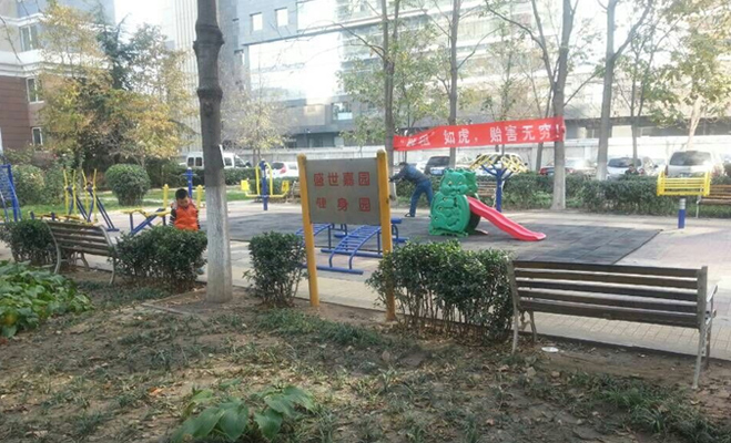 進入小區記者同樣被眼前的畫面震驚了,原來的木質景觀走廊已經倒塌,叢生的雜草已經覆蓋了土地原來的面貌。在一層住戶圍欄的水泥柱攔腰出現了巨大裂縫,給人搖搖欲墜的感覺。原本的綠化用地已經被居民種上了辣椒、大蔥等蔬菜,儼然成了私家菜園。