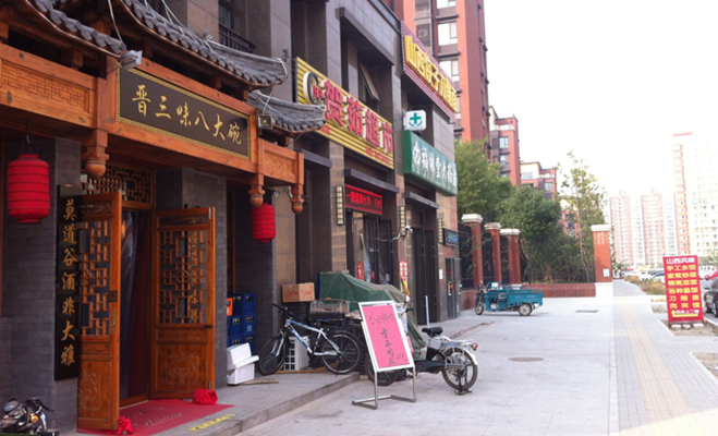 融創長灘壹號項目四周,記者步行10分鐘,繞道項目東側,看到晉三味八大碗飯店、小型超市以及福林堂大藥店,除此以外其余的生活配套,例如菜市場、洗衣店、自動提款機、寵物醫院、報刊亭等均需去景文屯村的下一站南百路才可以提供給業主使用。