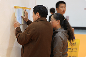 展會不乏誠意購房者仔細研究各樓盤報價 |
