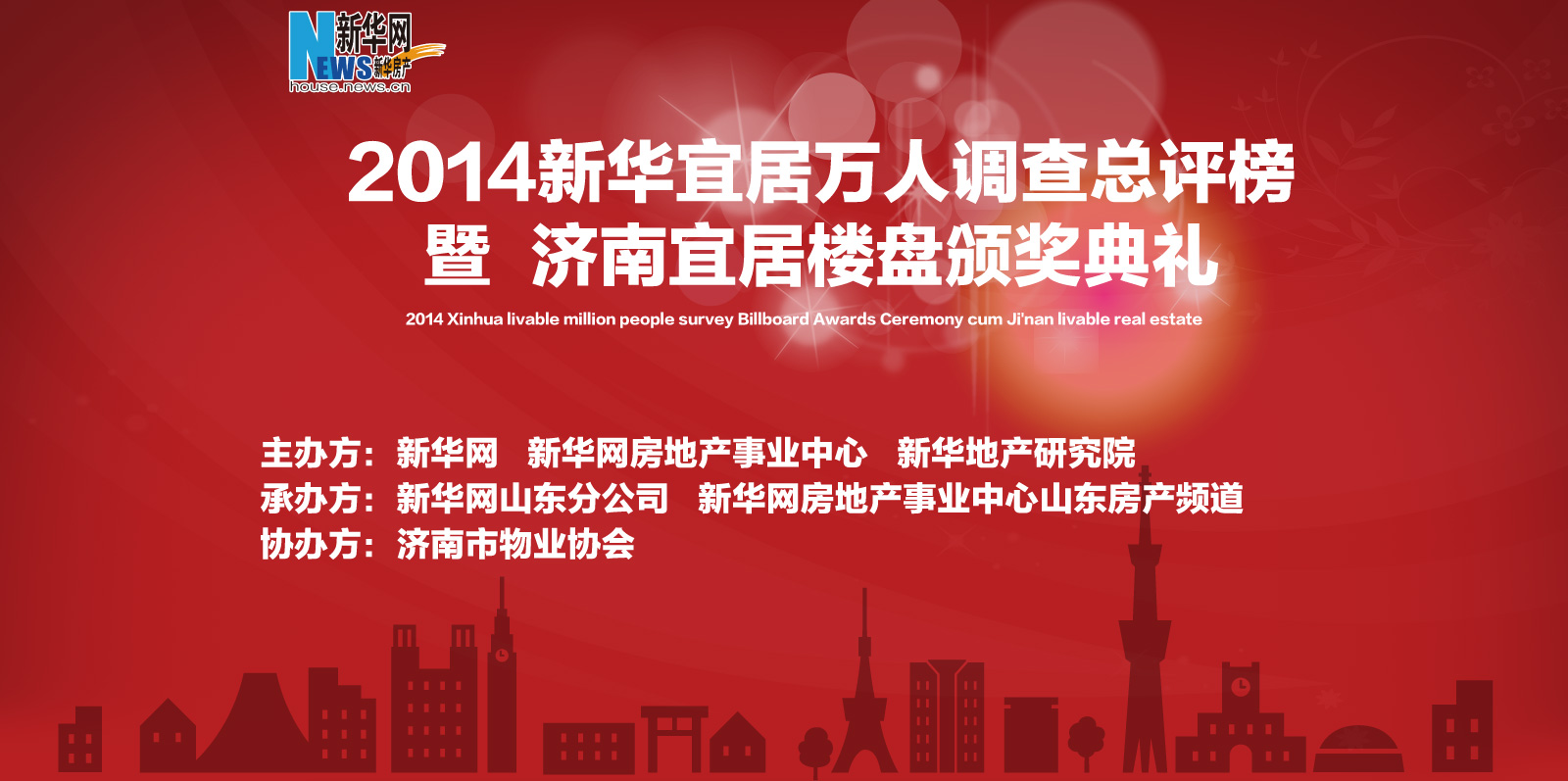 典禮現場,魯能領秀城、萬達華府獲頒2014濟南宜居樓盤最佳工程質量獎;中海天悅府、天鴻萬象新天、恒大帝景摘得2014濟南宜居樓盤最具人氣獎;金科城、華潤中央公園、世茂天城收獲2014濟南宜居樓盤最佳設計獎;綠地新都會、海爾云世界、萬科公園里獲得2014濟南宜居樓盤最具創新力獎;龍湖·名景臺則斬獲了最具分量的2014最佳宜居大獎(濟南)。