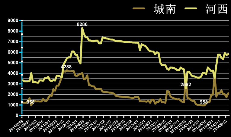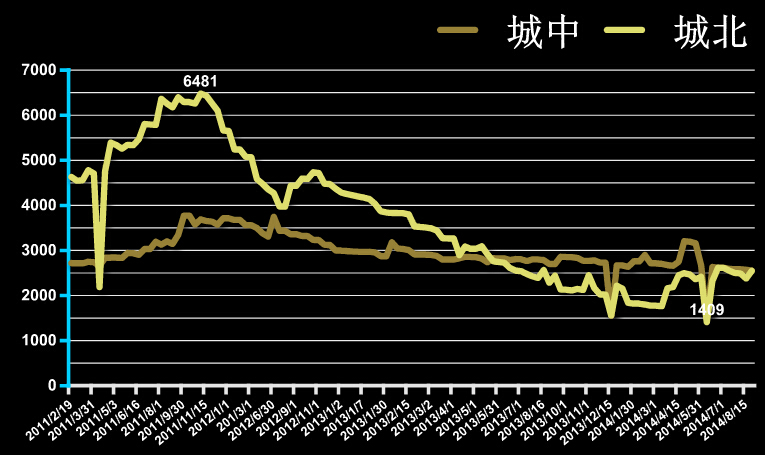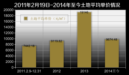 伴隨著土地成交面積、成交金額的增漲,土地的平均單價也在不斷升高。2011年時僅7442.18元/平方米,2013年一口氣漲至19145.96元/平方米,大約翻了有2.5倍。 [詳細]
