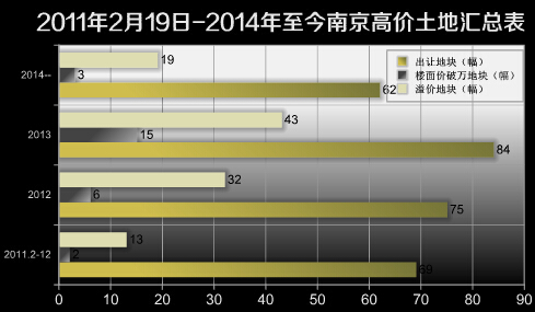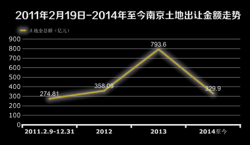 南京土地市場真正開始發力始于2012年,該年共成交75幅地塊,實際出讓面積為392.65萬平方米,成交總價為358.09億元,相比2011年全年成交金額(345.19億元)總價上漲3.7%。 而2013年年初“國五條”的出臺更是為全年土地市場火熱埋下伏筆。據新華網統計,2013年南京土地市場創下“招拍掛”以來土地成交金額的新高,共累計成交土地414.5萬平方米,總成交金額793.6億元。 [詳細]