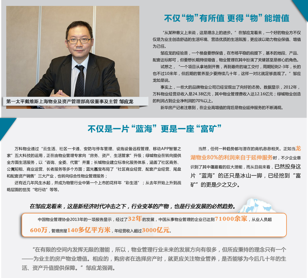 龍湖地產(chǎn)也從物業(yè)管理上發(fā)力,為業(yè)主提供“好的服務(wù)”。2012年,是龍湖物業(yè)成立15周年之際,其正式發(fā)布《龍湖物業(yè)標(biāo)準(zhǔn)(2012版)》白皮書,成為國(guó)內(nèi)首家向社會(huì)公開(kāi)發(fā)布管理和服務(wù)標(biāo)準(zhǔn)的物業(yè)企業(yè)。[詳細(xì)]