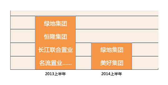 | 2013上半年,綠地集團、恒隆集團、長江聯合置業、名流置業(現更名為美好集團)等多家標桿房企積極拿地……