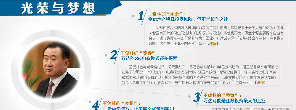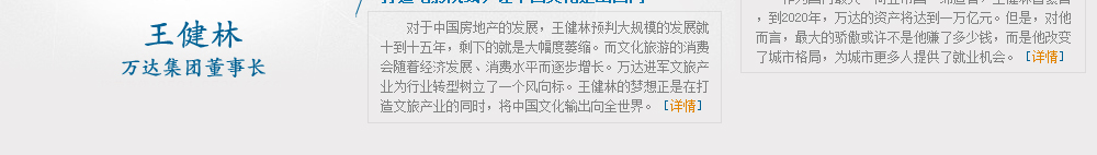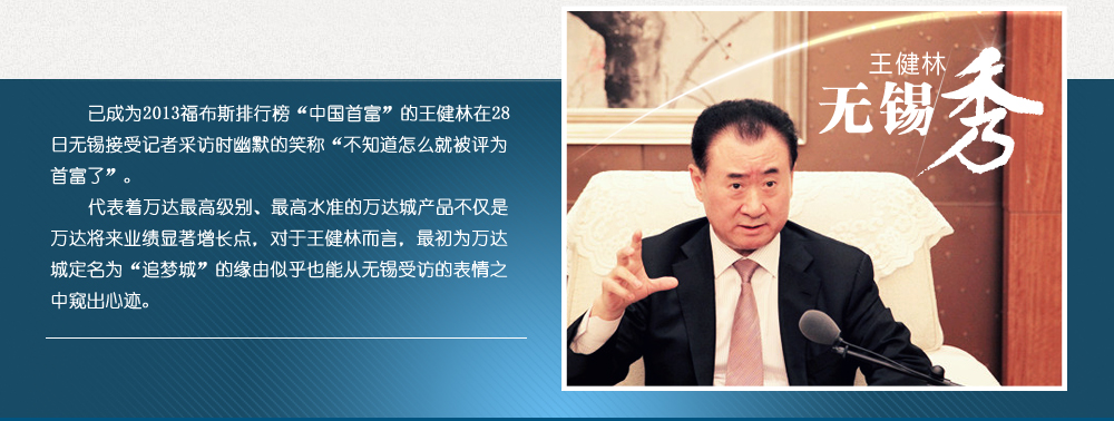 王健林表示,長三角是我們必須要布點的,我們在全國文化旅游布十個左右,無論如何不會離開長三角.在之前我們去考察過寧波、南京等等,只是沒有公布出來,最后選了無錫.此外,王健林將無錫萬達城與迪斯尼做比較,是為了將中國文化植入到萬達城中,形成屬于中國文化的旅游品牌,推向世界.無錫文化旅游城就是奔著這樣的目的打造的。[