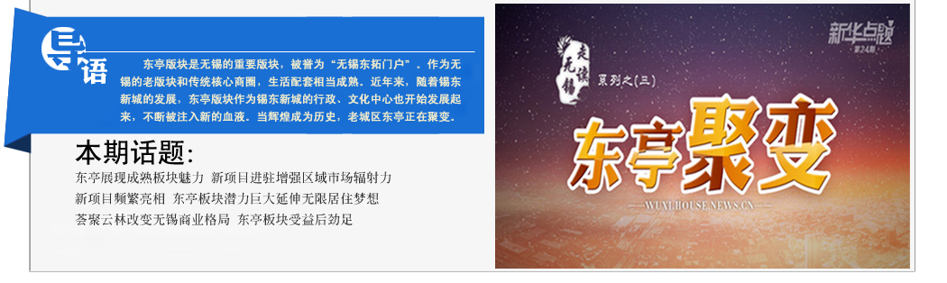 東亭版塊是無錫的重要版塊,被譽為“無錫東拓門戶”。近年來,隨著錫東新城的發展,東亭版塊作為錫東新城的行政、文化中心也開始發展起來,不斷被注入新的血液。當輝煌成為歷史,老城區東亭正在聚變。