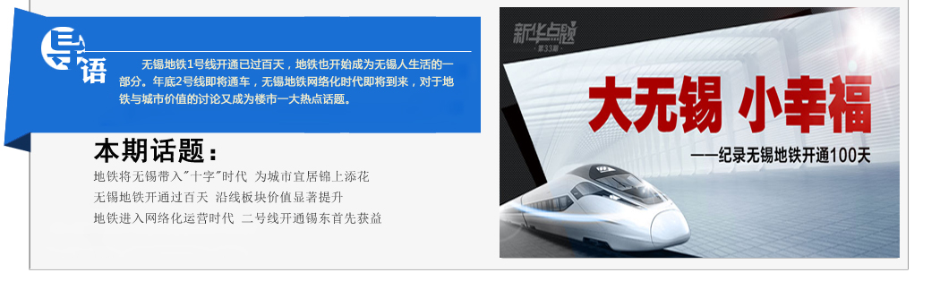 無錫地鐵1號線開通已過百天,地鐵也開始成為無錫人生活的一部分。年底2號線即將通車,無錫地鐵網絡化時代即將到來,對于地鐵與城市價值的討論又成為樓市一大熱點話題。