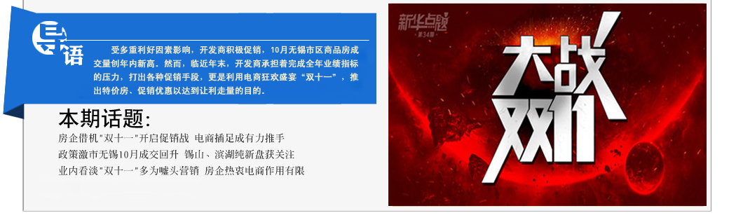 11月對(duì)于房地產(chǎn)市場(chǎng)而言似乎并不是個(gè)傳統(tǒng)旺季,然而借著“雙十一”全民購(gòu)物狂歡的熱潮,這個(gè)11月也擺脫了傳統(tǒng)淡旺季的慣性,開(kāi)發(fā)商延房地產(chǎn)市場(chǎng)回暖的勢(shì)頭,加大宣傳與優(yōu)惠力度,為完成年終業(yè)績(jī)指標(biāo)再度沖刺。