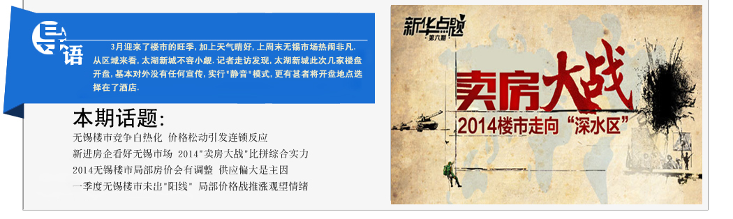 新進房企看好錫市場 2014"賣房大戰(zhàn)"比拼綜合實力