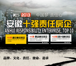 由新華網?新華房產主辦發起的"中國夢 責任心"新華網2013年度安徽十強責任房企評選已盛大啟動,在經過考察、了解房企背景的情況下,最終有10家房企名單出爐。