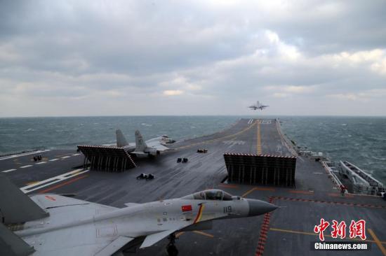 中國海軍航母編隊在南海組織艦載機起降訓(xùn)練