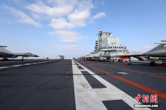 資料圖:2016年12月23日,在黃海某海空域,多批次殲-15艦載戰(zhàn)斗機從遼寧艦飛行甲板起飛升空,開展了空中加受油、空中對抗等多項訓(xùn)練任務(wù)。 中新社發(fā) 莫小亮 攝