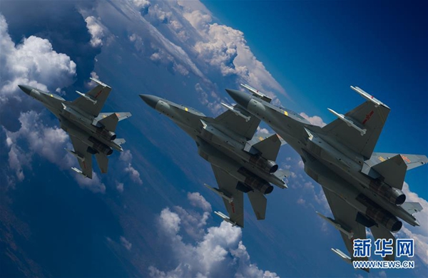 中國空軍殲-16戰(zhàn)機(jī)進(jìn)行飛行訓(xùn)練(資料照片)。新華社發(fā)(楊軍 攝)