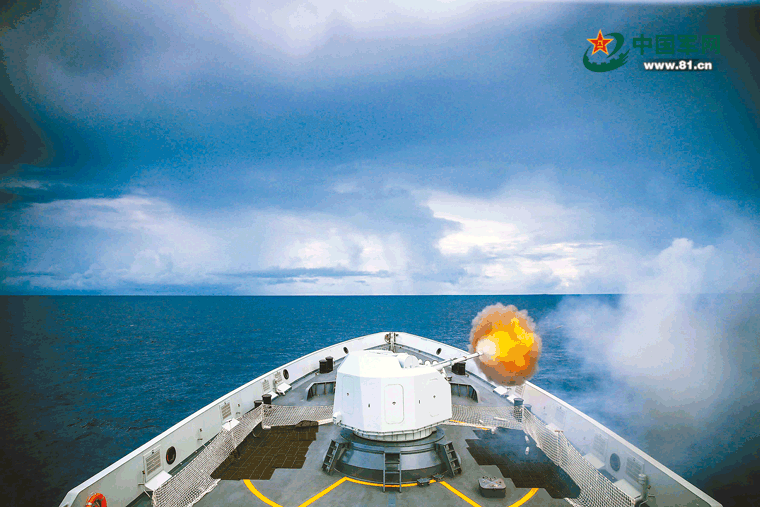 中國海軍第29批護航編隊進行實彈射擊訓練