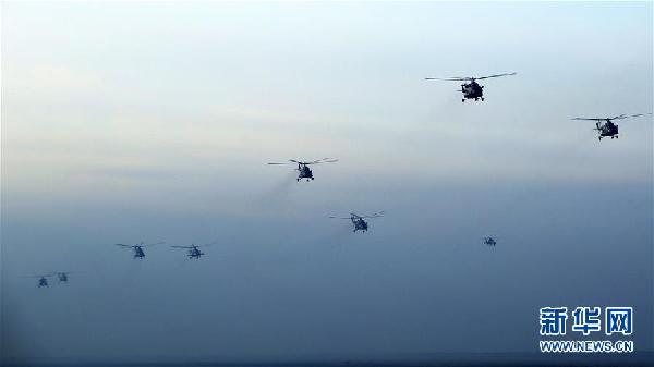 ????陸軍第79集團軍某陸航旅在復雜條件下組織大集群編隊演練,提高實戰化水平(2018年1月5日攝)。 新華社發(李寧 攝)