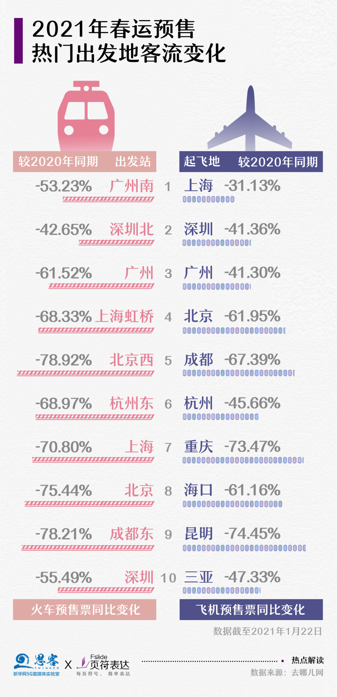 2021年春運(yùn)客流驟降,“就地過年”減少了春運(yùn)期間人流遷徙。根據(jù)交通運(yùn)輸部門預(yù)測,2021年全國春運(yùn)期間將發(fā)送旅客17億人次左右,日均4000萬人次,比2019年下降四成多,比2020年增加一成多。