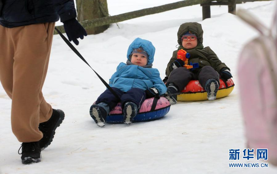 1月24日,孩子們在白俄羅斯首都明斯克郊區(qū)的民族建筑博物館內(nèi)乘坐滑雪氣墊圈,感受雪趣。正值隆冬冰雪時(shí)節(jié),博物館舉辦主題游園活動(dòng),讓人們感受白俄羅斯傳統(tǒng)冰雪文化的樂趣。新華社發(fā)(任科夫攝)