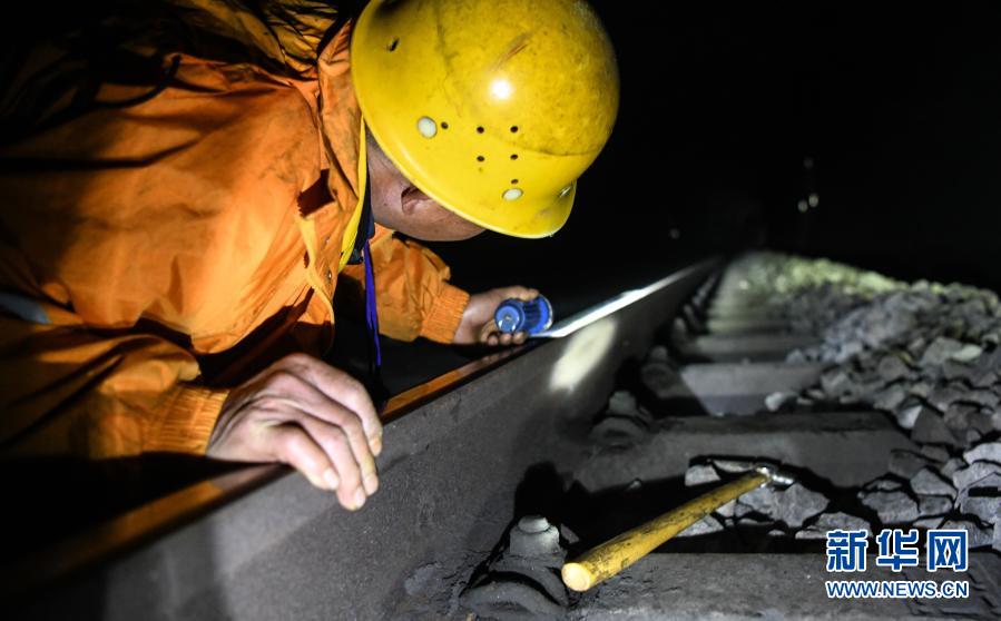 在廣西河池境內(nèi)黔桂鐵路線上的鄧山隧道,中國(guó)鐵路南寧局集團(tuán)有限公司柳州工務(wù)段的4名看守工輪換值班,依靠手電筒在黑暗中穿行,及時(shí)巡查隧道中可能出現(xiàn)的各種隱患,確保每天經(jīng)隧道運(yùn)行的59趟客貨列車(chē)春運(yùn)安全。鄧山隧道全長(zhǎng)773米,是一個(gè)需要人員全天候看守的鐵路隧道。